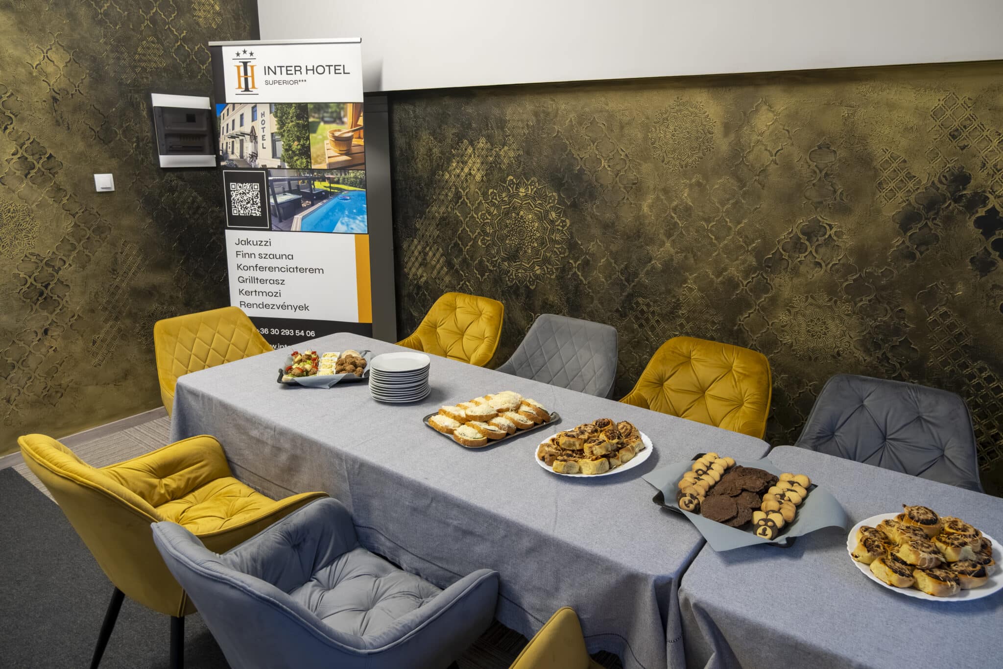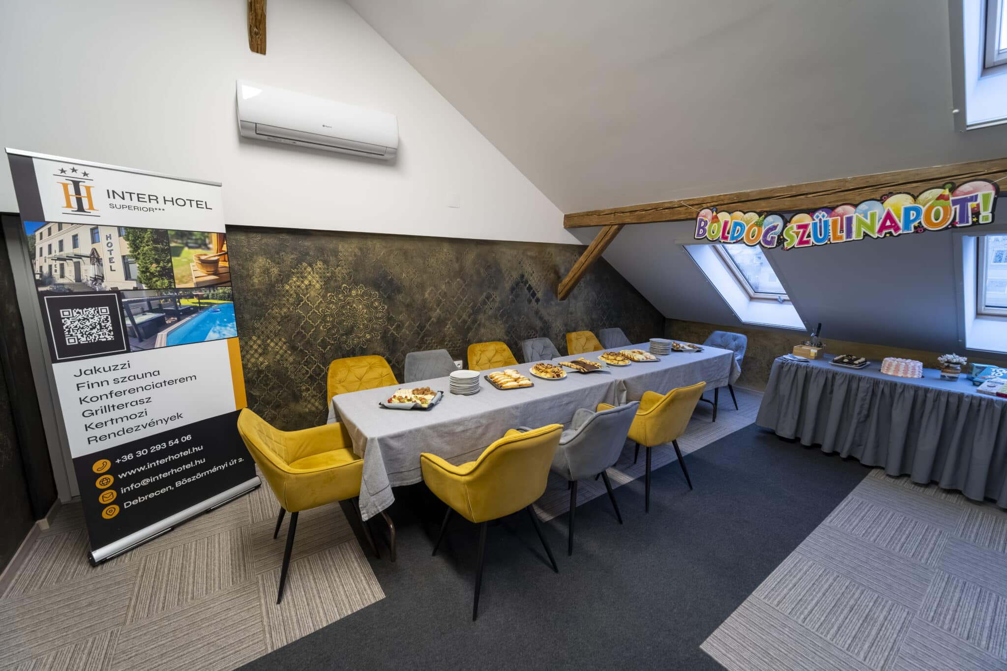 Az élet legszebb pillanatai megérdemlik a méltó környezetet. Legyen szó névadóról, keresztelőről, házassági évfordulóról, születésnapról vagy akár aranylakodalomról, az Inter Hotel privát rendezvényterme bensőséges, mégis igényes helyszínt biztosít a közös ünnepléshez. Az akár 20-25 fős társaságok számára is kényelmesen berendezhető tér saját mellékhelyiséggel és konyhai résszel is rendelkezik, így a család zavartalanul élvezheti az együtt töltött időt.