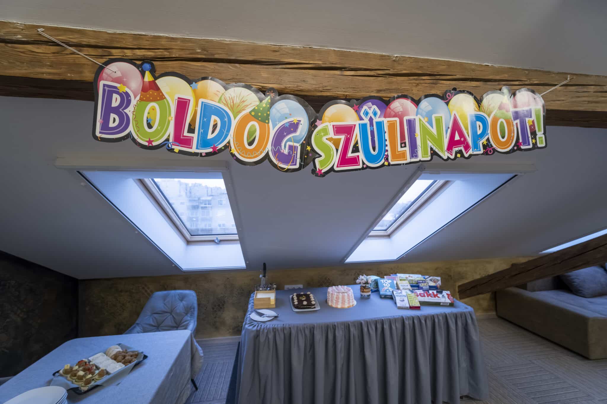 Gyermekzsúrok esetén vidám dekorációval – például lufikkal és tematikus díszítéssel – és társasjátékokkal tesszük még emlékezetesebbé az alkalmat. A kivetítőn pedig zene, fotóválogatás vagy akár mesefilm is lejátszható.