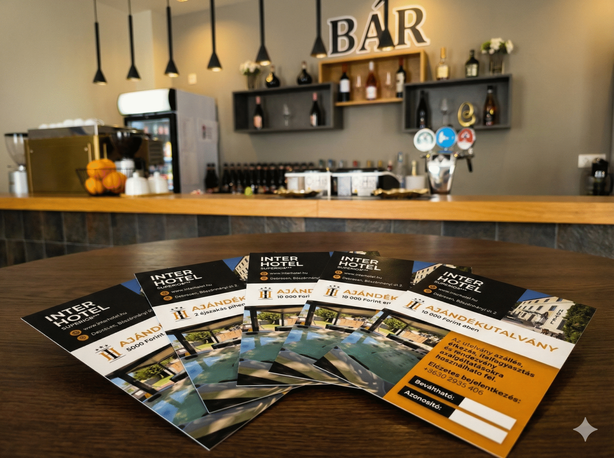 A legjobb benne pedig az, hogy gyorsan és praktikusan elérhető: az ajándékkártya a megrendelést követően 24 órán belül megérkezik a megadott e-mail címre, elegáns, nyomtatható formátumban, így tökéletes „last minute” ajándék is lehet. Ha idő szűkében vagy, vagy épp távolról szeretnél meglepetést küldeni, az Inter Hotel ajándékkártya mindig biztonságos és igényes választás.